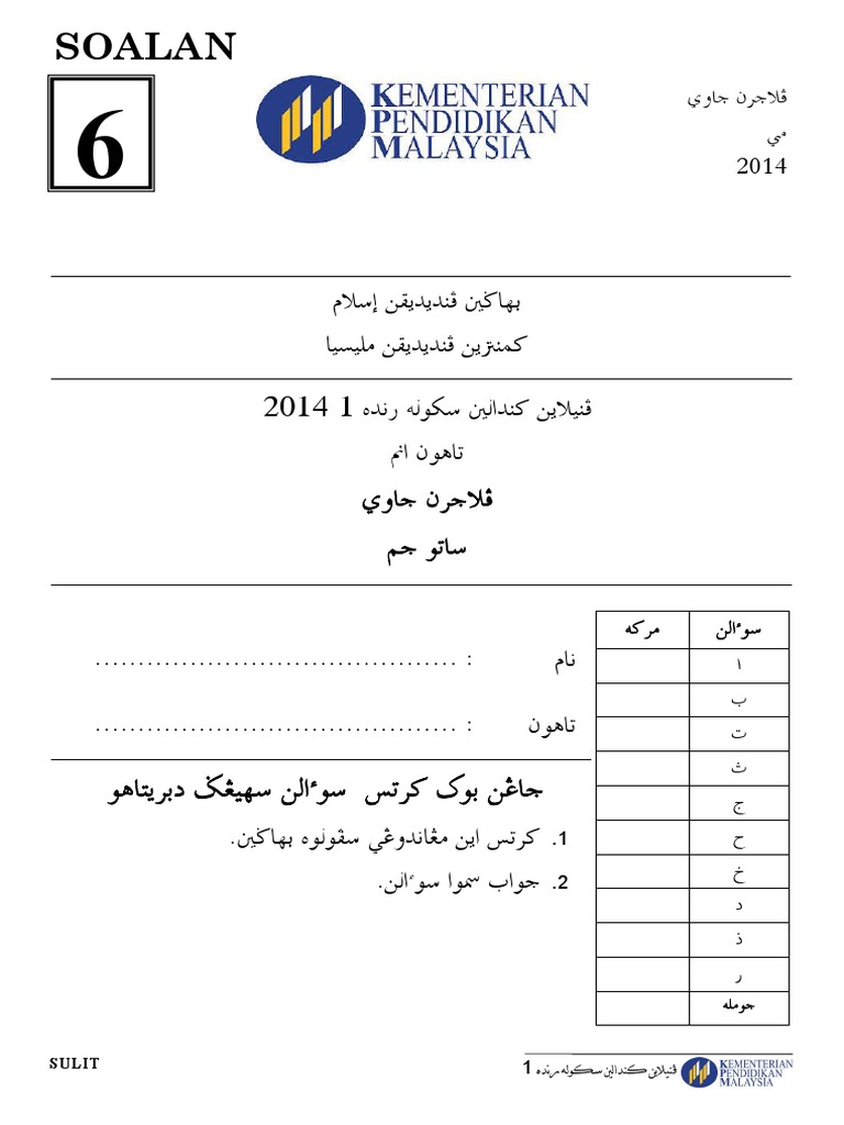 Jawi Tahun 6 2013 Mei Pksr 1 Soalan